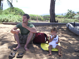 Jasper is now on my lap, sucking his thumb as the sun shines and the breeze blows down off of the mountains. About 10 minutes from here, tucked away in a little neighborhood is Baby Beach. A lava shelf about 20 feet offshore acts as a wave break, and creates basically an ocean swimming pool. Aside from being somewhat windy, its a perfect place for our little family to hang out. Jacob can run on the beach, I can swim up and down without getting smashed by waves, and Jasper can play by the shore safely. It's good stuff.